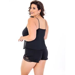 Short Doll (Camisetinha + Short) Plus Size confeccionados em microfibra de poliamida