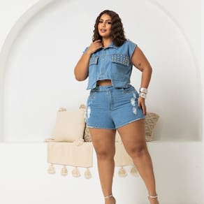 O Short Feminino Plus Size Jeans Claro com Botão de Pressão é perfeito para quem busca conforto, praticidade e um toque moderno no visual. Confeccionado em jeans de lavagem clara, ele apresenta modelagem especialmente pensada para o corpo plus size, proporcionando um caimento confortável e valorizando as curvas de forma natural.