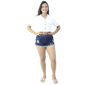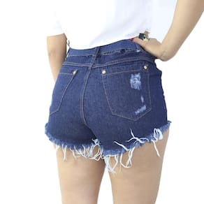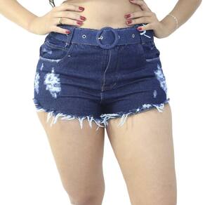 Short Jeans Feminino Com Cós passante, fecho por zíper e botão acompanha cinto modelagem levanta bumbum com costuras trabalhada para deixar o look perfeito possui cintura alta detalhe em destroyed barra desfiada