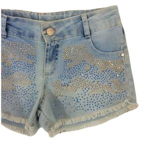 Short jeans molinho, com barrinha desfiada e muito brilho na frente, super estiloso. Petit Cherie é maravilhosa!! Perfeito para ocasiões especiais como aniversários e festas em geral , ou simplesmente para dar um rolê babando na sua lindezura. Traz muita natualidade e leveza que certamente vão encantar nossas pequenas. Coleção inspirada em cores e materiais do Brasil e Europa.Tudo pensado e desenvolvido com muito carinho.