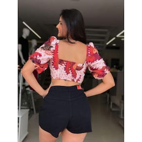 Short Jeans Curto Cintura Alta Fecho Por Ziper
