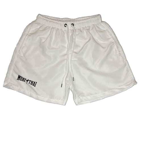 Short Masculino Tactel Estampa Muay Thay Cordão Ajustável - Branco - P