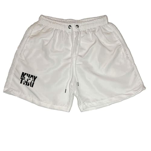 Short Masculino Tactel Estampado Cordão Ajustável Muay Thay - Branco - M