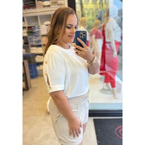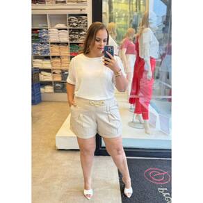 Short Plus Size em Linho com Barra Italiana - Descubra o charme e a elegância do short plus size em linho, ideal para compor looks sofisticados e confortáveis. Este short foi pensado especialmente para valorizar e proporcionar o máximo de conforto às mulheres que vestem tamanhos maiores. Com um design moderno, ele apresenta um cós com elástico para um ajuste perfeito e confortável ao corpo. O aviamento de correntes adiciona um toque de estilo único, enquanto as pregas frontais criam um caimento sofisticado e favorecem a silhueta. Com barra italiana e zíper lateral funcional, o short oferece praticidade e um visual alinhado. Os bolsos laterais funcionais trazem ainda mais utilidade ao modelo, ideal para o dia a dia e ocasiões especiais. Confeccionado em uma composição de 60% Poliéster, 22% Viscose, 10% Linho e 8% Algodão, o tecido oferece leveza e respirabilidade, perfeito para os dias mais quentes. Esse short é a peça essencial para compor looks elegantes e práticos com um toque contemporâneo.