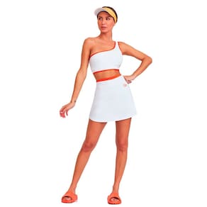 Perfeito para a prática do Tênis ou do Beach Tennis, o Short Saia Caju Brasil Silk te dá conforto e elasticidade para jogar com estilo e liberdade! O modelo conta com cós de elásticos num tom de laranja. O design tem o branco neon como a cor predominante, que possui excelente respirabilidade, e possui um short interno, com bolso lateral ideal para guardar as bolinhas. Conta também com a tecnologia UV, que protege sua pele dos raios solares. Adquira já seu Short Saia Caju Brasil Silk e arrase durante as partidas!Nome: Short Saia Caju Brasil Silk Branco Origem: Nacional Gênero: Feminino Cor: Branco Composição: 80% Poliamida e 20% Elastano Short Interno: 90% Poliamida / 10% Elastano Forro interno: Possui Peso: 165g (Referente ao tamanho M)Medidas aproximadas (AxL): Altura x LarguraP: 36 cm x 40 cm M: 38 cm x 42 cm G: 40 cm x 44 cmGarantia do fabricante: Contra defeitos de fabricação