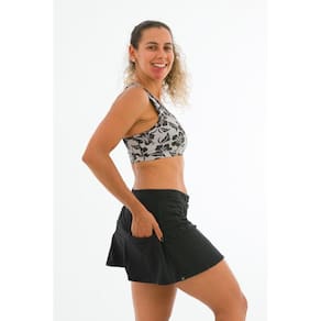 Saia 79% poliamida, 21% elastano; Short 77% poliamida, 23% elastano