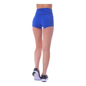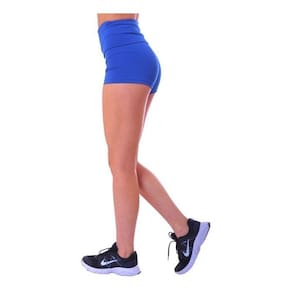 Shorts Curto Azul Fitness Feminina Suplex Cintura Alta