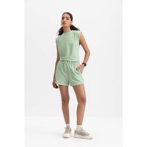 Shorts Feminino Em Moletinho Essendi Verde Claro - Verde Claro - G