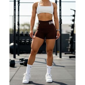 Shorts Feminino Fitness Cintura Alta Modelador Sem Costura Compressão Texturizado para Academia, Corrida e Yoga Sport - GG - Marrom