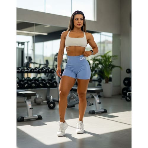 Shorts Feminino Fitness Cintura Alta Modelador Sem Costura Compressão Texturizado para Academia, Corrida e Yoga Sport - Azul Bebê - GG