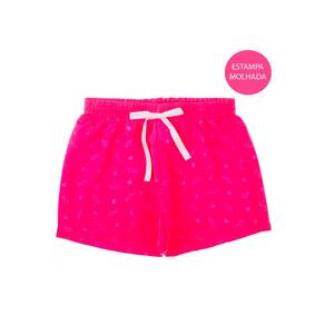 O shorts menina rosa neon - estampa revela na água é confeccionado em tactel 100% poliéster.