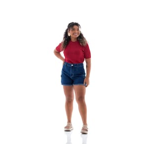 Medidas da Modelo: Altura: 160cm, Cintura: 77cm, Quadril: 95cm