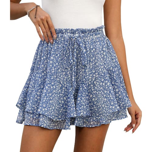 Shorts LOMMOJ, saias casuais de chiffon de verão, babados, azuis, florais
