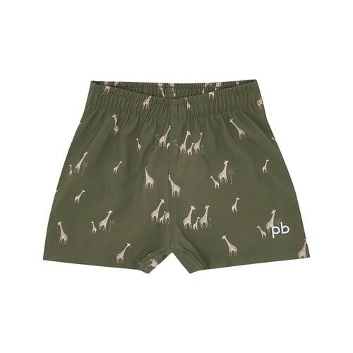 Muita praticidade e leveza para os passeios de verão! Confeccionado em tecido nylon com elastano, o short na cor sublimado militar possuí uma estampa com pequenas girafas passeando pelo nosso safari e também contém uma etiqueta em termocolante próximo a perna com identificação Pulla Bulla. Aproveite as brincadeiras de forma leve e confortável!\n
