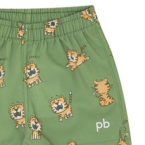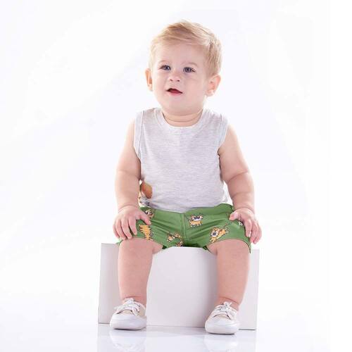 Para ir a praia ou a piscina com os papais, o baby estará seguro e confortável com o short confeccionado em tecido nylon e elastano no cós. Com estampa de tigrinhos sublimada na cor oliva a diversão estará garantida onde for!\n