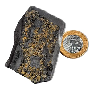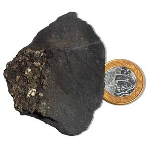 Apresentamos uma pedra rara e autêntica: Shungite com Pirita Incrustada. Esta peça, que chega diretamente da Rússia, é uma verdadeira raridade no Brasil, especialmente por sua combinação única de Shungite e Pirita, criando um visual deslumbrante. A pedra não é sintética nem de laboratório – ela é natural, extraída diretamente da terra. Esta é a peça perfeita para colecionadores de pedras raras ou para aqueles que buscam a energia poderosa da Shungite no esoterismo. Características:\nNome das Pedras: Shungite com Pirita Cor das Pedras: Preto Fosco com pigmentos dourados brilhantes (Pirita) sobre a superfície Corte das Pedras: Natural, sem lapidação Claridade das Pedras: Denso, sem transparência Medidas Aproximadas: 50 a 110 mm Peso Aproximado: 50 a 75 Gramas Origem: Rússia\nPropriedades e Benefícios: A Shungite é uma pedra com uma poderosa capacidade de absorção e transmutação de energias negativas, além de atuar como um escudo contra radiações eletromagnéticas. Suas propriedades terapêuticas são conhecidas por promoverem um equilíbrio saudável no corpo físico, mental e emocional. É ideal para quem busca harmonizar a energia ao seu redor e purificar o ambiente. A presença da Pirita, com seus lindos brilhos dourados, complementa ainda mais o poder da Shungite, trazendo uma energia extra de prosperidade e força. Esta combinação torna a pedra ainda mais rara e valiosa. Uso Tradicional e Histórico: Shungite é um mineraloide de origem orgânica, com um histórico de uso na região da Península de Karélia, na Rússia, desde os tempos antigos. Seu poder de purificação era bem conhecido, e a região foi o local do primeiro SPA da Rússia, fundado por Pedro o Grande em 1714, aproveitando as propriedades purificadoras da Shungite. No passado, a Shungite era utilizada para purificar a água e tratar doenças de pele. Hoje em dia, é amplamente valorizada por suas qualidades esotéricas, sendo um excelente aliado para o equilíbrio emocional e espiritual. Por que escolher esta peça?\nRaridade: Pedra natural rara, difícil de encontrar no Brasil. Beleza única: A combinação de Shungite com Pirita cria um visual incrível e energicamente poderoso. Marca: CristaisdeCurvelo