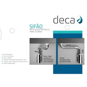 Sifão com design clean. Tampa localizada na parte inferior do sifão, além de conferir um sifão com design moderno, facilita a limpeza e manutenção. Desenho sem emendas, não acumula sujeira. Com flexibilidade de instalação em três dimensões: altura, profundidade e deslocamento. O produto é ideal para economia de espaço, ideal para gabinetes.
