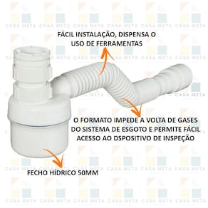 Descrição do Produto:Sifão Ajustável Multiuso Copo Branco – TigreO sifão Mobylle foi criado para tornar a instalação mais simples, principalmente em locais de difícil acesso. Seu formato impede o retorno de gases provenientes do interior do sistema predial de esgotos sanitários e permite fácil acesso ao dispositivo de inspeção.Características do produto:- Tem a menor altura do mercado, atendendo a exigência de norma (fecho hídrico 50 mm), podendo ser adaptado em locais de pouco espaço;- Fácil instalação, dispensa o uso de ferramentas, sendo suficiente apenas aperto manual;- Instalação simplificada em lugares de difícil acesso;- Impede o retorno de gases existentes na tubulação devido ao fecho hídrico;- Permite acesso fácil numa provável limpeza e desobstrução da tubulação de esgoto.Instruções de uso:- Para instalar o sifão em pias de lavatórios ou tanque, utilize a bucha de redução rosqueando-a na válvula de 7/8", 1.1/4" ou 1";- Para instalar o sifão em pia americana, não utilize a bucha de redução, basta rosquear a porca superior do tubo prolongador diretamente na válvula de 1.1/2";- Ajuste o tubo prolongador na altura desejada afrouxando a porca inferior. Chegando à posição desejada, apertar manualmente a porca a fim de obter perfeita estanqueidade;- Verificar o diâmetro do tubo ou bolsa da conexão de esgoto;- Cortar a extremidade escalonada do tubo extensivo de acordo com o diâmetro do tubo ou conexão de esgoto e encaixá-lo completamente;- Importante: Para a instalação do sifão Tigre, não é necessária ferramenta para aperto;- Importante: Não utilize nenhum produto químico corrosivo para limpeza, pois ele poderá danificar o produto, bem como os tubos e conexões de PVC do sistema de esgoto.