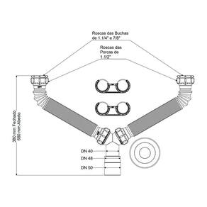 O que vem na caixa:1 Sifão com dois tubos extensíveis1 Canopla2 Suportes