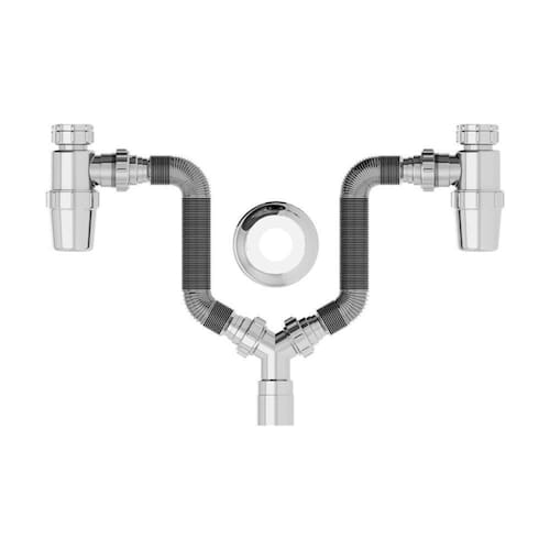 Sifão Duplo Sanfonado Extensível Censi com Copo Horizontal Cromado