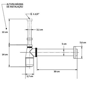 -bitola: 1.1/2' x 2 Polegadas -comprimento do Tubo: 30 cm -resistente a água fria e quente -altura e comprimento com ajuste -temperatura máxima da água: 70C -medidas do produto na foto do anúncio -material de fabricação: Metal (Liga de cobre) -possui copo coletor que evita o mau cheiro, fácil de remover para limpar