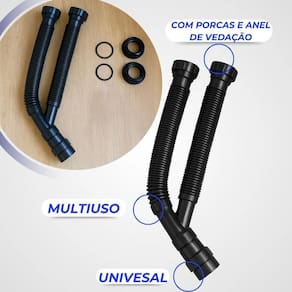 Sifão sanfonado duplo lavatório/pia/tanque 80cm preto preto