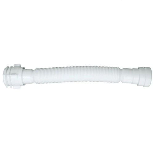 Corrige desalinhamentos entre cuba e tubulação de despejo. Ideal para tanques, pias e cubas. Acabamento Branco. Produto suporta água fria e quente até 90C. Compatível com tubos e conexões de 40 e 50mm.