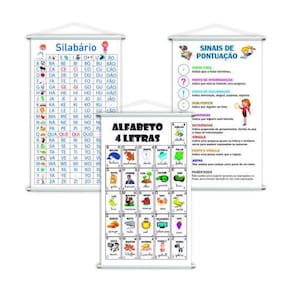 TAMANHO:3 Banners com medida total de 120x60cm cadaACABAMENTO:Bastões de madeira + corda na parte superior.Atualmente existem diversas formas de aprendizado e a modernidade facilita e ajuda no desenvolvimento de cada passo escolar e pedagógico de uma criança. O banner pedagógico é uma delas, uma ótima forma de incentivar e começar a trabalhar a mente e praticar o aprendizado.Desenvolvemos diversos modelos de banners e cada um deles oferece apoio e ajuda no desenvolvimento em várias áreas.Quer ajudar os seus alunos a desenvolver esses aprendizadosOs Banners Pedagógicos são excelentes para trabalhar de uma forma interativa o desenvolvimento dos alunos, facilitando na hora de ensinar e memorizar cada passo.