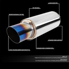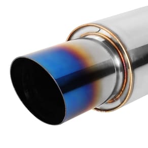 DNA MOTORING EXA-MF-001-T1 10 cm OD silenciador de escape universal de aço inoxidável, 7,6 cm, entrada de 5 cm, corte diagonal - ?Este item inclui?1 silenciador de aço inoxidável polido; ponta de corte diagonal de cor de titânio queimado; núcleo perfurado com isolamento de fibra de vidro - ?Tamanho?Comprimento do recipiente do silenciador: 23,4 cm, Diâmetro: 10,1 cm OD; Comprimento da ponta: 8,8 cm, Diâmetro: 7,6 cm OD; Diâmetro de entrada: 5 cm OD; Espessura da parede de calibre 16 - ?Design direto?A forma reta deste silenciador alivia a pressão traseira enquanto absorve as ondas sonoras - ?Qualidade superior?Estrutura de aço inoxidável para resistência e durabilidade - ?Observação?A instalação profissional é altamente recomendada; as instruções de instalação não estão incluídas