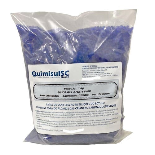 A sílica gel é um poderoso agente desumidificador e desidratante de extrema eficiência, recomendado mundialmente para a proteção de produtos, objetos e diversos materiais contra a umidade e oxidação, garantindo a integridade do seu produto.O uso da sílica gel é altamente recomendado em casos de: Armazenagem e preservação de medicamentos e suplementosProteção contra umidade em embalagensProteção de peças e componentes eletrônicosArmazenagem de equipamentos fotográficos e óticosCalçados, bolsas e acessórios Artigos de couro Transporte de cargas via marítimoImagem Ilustrativa da Sílica gel azul 4-8 mm ,neste anúncio é comercializado a 1-3 mm Marca: Sílicanew