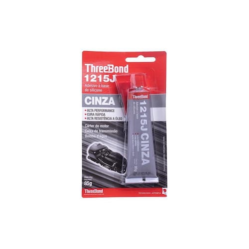 Silicone Alta Temperatura Cinza Tb 1215j 85g - ThreebondÉ um silicone indicado para vedação de peças flangeadas, vedação de cárter, carcaça do diferencial, caixa de transmissão e outros. Após a polimerização, transforma-se em uma junta flexível.Aplicações:Reservatório do óleo, tampa do cabeçote, tampa dianteira do motor, carcaça do diferencial, caixa de transmissão, protetor de poeira e bomba dágua.Vantagens:Preenche as imperfeições da superfície da peça;Livre de solventes;Cura sem contração e não libera ácido acético;Não é corrosivo;Possui elevada resistência à variações de temperatura;Excelente resistência à pressão, vibração e a agentes químicos, como óleo.Características:Cor: CinzaTemperatura de Trabalho: - 60 a 200C resistência momentânea até 250C Tempo Livre de Toque: 9 minCura Total: 24 Horas para 3 mm de espessura em temperatura de 25C Obs.: O produto TB1215J não é recomendado para transmissão automática.Embalagem: 85g
