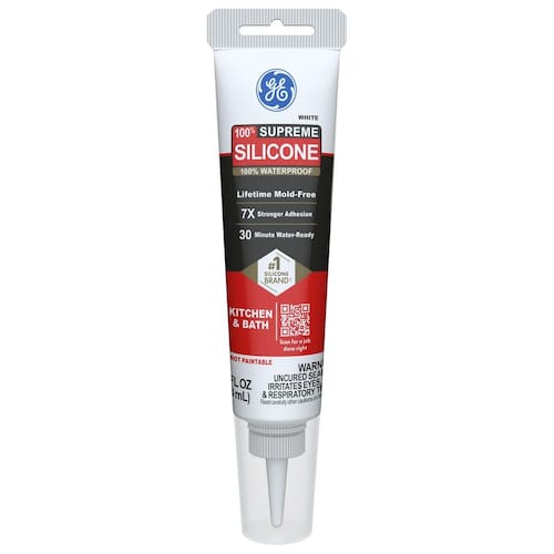 GE Calafetagem de silicone Supreme para cozinha e banheiro, branco, tubo de 83 ml, 1 pacote - selante de silicone 100% impermeável, adesão 7x mais forte, à prova de encolhimento e rachaduras