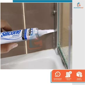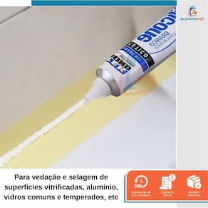 O silicone é da marca Tekbond, uma referência no mercado de adesivos e selantes.