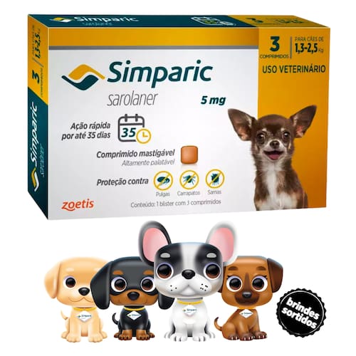 Simparic Antipulgas e Carrapatos Caes 1,3 a 2,5kg c/ 3 Comprimidos