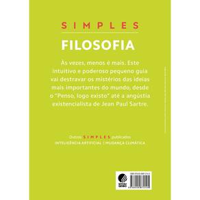 Compreender a filosofia nunca foi tão simples. Este pequeno e poderoso guia apresenta o universo fascinante da filosofia. Aprenda mais sobre as ideias que moldaram o pensamento humano, desde o “Penso, logo existo”, de René Descartes, até a angústia existencialista de Jean Paul Sartre. O título faz parte da coleção Simples, que traz livros que abordam temas atuais, e muitas vezes complexos, de forma simples e direta. Com infográficos, ilustrações e textos dinâmicos, o livro apresenta teorias marcantes de grandes filósofos e pensadores, além de conceitos essenciais das principais escolas filosóficas, como o empirismo, o racionalismo, o dualismo e o materialismo. A obra é ideal para estudantes, educadores e curiosos, e também para os fãs da coleção best-seller As Grandes Ideias de Todos os Tempos.