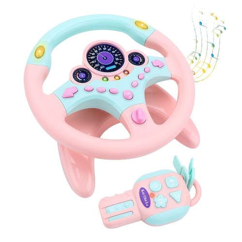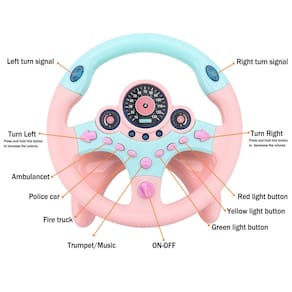 1 - BRINQUEDOS PARA BEBÊS: Pronto! Vá! Gire a chave para ligar o motor, com efeitos de luz e som mais realistas e interessantes. Mantenha seu filho entretido e acenda sua imaginação com esta combinação imersiva de volante e teclas. Perfeito para viagens de carro! - Lista de produtos: Incluído: 1 * chave, 1 * volante; 1 * base, 1* fixo. - Brinquedos de direção do assento traseiro: experiência de condução realista com recursos do painel: luzes indicadoras, buzina e sirenes, rotação de 360 graus, velocímetro, chave de carro interativa, medidor de combustível, luzes de perigo. Direção real altamente simulada, cheia de diversão - Este brinquedo de volante de direção simulado restaura altamente a cena real de condução em termos de aparência e função. As crianças podem aprender vários conhecimentos de trânsito. - SIMULADOR DE CONDUÇÃO PARA CRIANÇAS: este volante é muito adequado para ser levado para dentro do carro, e serve para todos os modelos, e tem as funções de ensinar conhecimento de trânsito, voz interativa, treinar a capacidade de agarrar as crianças, treinar a audição das crianças, etc - Os pais não se preocupam em manter o bebê sozinho no banco traseiro quando dirigem, este brinquedo foi projetado como um centro de brincadeiras no carro, que pode entreter seus filhos.