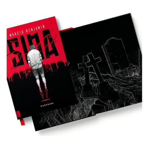 Um Nordeste místico, assombrado e repleto de raiz. Sina é o primeiro romance do premiado autor Márcio Benjamin publicado pela DarkSide® Books. Uma obra de voz única, mordaz e que transborda assombro e verdade, um presente para quem procura uma literatura enraizada no solo brasileiro. Com um único fio condutor e três linhas temporais distintas que se entrelaçam, nossa jornada começa ao lado de José Trancoso, um viajante que se vê sem carro ou destino, abandonado pela graça divina em uma assombrada estrada de chão batido. A partir desse momento, tudo o que o leitor conhece como “real” passa a ser sublimado, mas não completamente esquecido. As histórias de Márcio Benjamin e seu porta-voz, Zé Trancoso, não habitam apenas o imaginário coletivo; elas fazem parte do cotidiano das regiões mais interioranas do país, de suas lendas, de seu folclore. O folk horror que o autor apresenta em Sina é exuberante, pungente e facilmente confundido com a realidade do interior nordestino. Para representar o Nordeste com propriedade precisamos experimentar a secura da terra, a amargura do sertão, a beleza que às vezes se esconde no meio da penúria. Para falar do Nordeste é preciso conhecê-lo, e Márcio Benjamin se mostra um especialista em cada palmo de chão que pavimenta seu novo livro. Um genuíno filho dessa terra. Sina é um livro denso, feito de chão, sangue e gente. Logo no início do livro, como quem desperta de um sonho dentro do outro, nos deparamos com um estranho povoado e suas Três Guardiãs, três mulheres cegas. Da mesma forma, o povoado Solidão também se descortina em um novo personagem, cercado de segredos, um verdadeiro portal no tempo que vai e volta, que oculta e revela, assim como a narrativa enigmática e surpreendente do autor. A verdadeira sina de um leitor é garimpar, escavar e encontrar obras raras como essa em uma edição trevosa com o toque da Caveira e as ilustrações magistrais de Shiko, vencedor dos prêmios HQMix e Angelo Agostini e considerado um dos maiores nomes do quadrinho brasileiro atual. Como resultado, os leitores podem esperar uma experiência imersiva e sensorial.