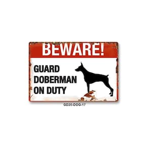 Material: Placa de advertência em PVC — apresenta uma etiqueta “CUIDADO” em negrito, sinalizando a presença de um guarda Doberman de plantão, garantindo a segurança em sua casa ou empresa. Decalque de vinil de alta qualidade — Feito de material de PVC durável, este adesivo autoadesivo é perfeito para uso interno e externo. Fácil aplicação - O suporte autoadesivo facilita a aplicação em qualquer superfície limpa e lisa sem deixar resíduos. Design atraente - Esquema de cores vermelho e preto com uma mensagem de aviso clara e uma silhueta de cachorro, garantindo alta visibilidade para fins de segurança. Uso multiuso — Ideal para cercas, portas, portões e janelas, oferecendo um meio de dissuasão prático e eficaz para possíveis intrusos.