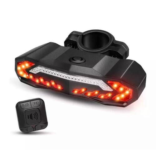 - 6 modos : Pisca para direita e esquerda, constante, flash, flash rápido, flash lento e modo emergência - Sistema Anti-furto - Sensor de freio - Sensor de ligar e desligar - Buzina - USB recarregável - Som: 110BD - Engate Rápido