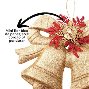 Sino Duplo Natal Decor Dourado, Flor Bico de Papagaio 28cm