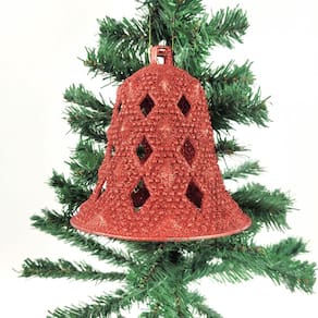 Brilho e elegância: com seu acabamento em glitter vermelho, este sino captura a luz e proporciona um brilho especial, tornando-se um destaque em qualquer arranjo natalino.