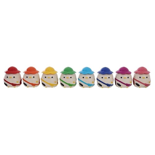 - Dimensões aproximadas: Cada pinguim possui cerca de 10 cm de altura.