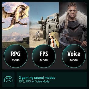 - Otimize seu áudio para intensidade e realismo: 3 modos de som para jogos (RPG, FPS ou modo de voz) desenvolvidos em parceria com a equipe de som online Final Fantasy(R) XIV (FFIXV) mais modos de música, cinema e estéreo para conectar você ao seu entretenimento