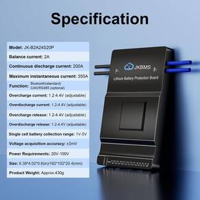 - Segurança aprimorada: proteja sua bateria com proteção contra sobrecarga, sobredescarga, sobrecorrente, curto-circuito e temperaturas extremas. A equalização ativa JKBMS aumenta a vida útil da bateria e melhora o desempenho
