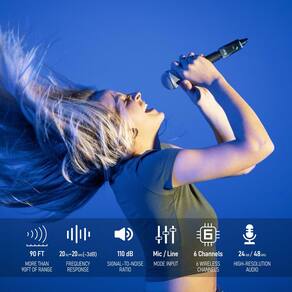 - Versatile Compatibility: Support 6 sets in the same place simultaneously. Works with any dynamic/Harmonic microphone, Audio mixer, PA system, Provides stable and reliable wireless transmission.Works with any active loudspeakers, Perfect for venues, weddings and mobile DJ's