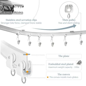 KOLAKO Faixa de cortina de teto, cortina curvada flexível e dobrável para montagem no teto, acessórios de trilho deslizante, cortinas de beliche, trilho de cortina para trailer, divisor de quarto, trilho de teto para cortinas Você receberá para cortina de teto 1 trilho de cortina flexível de 5 m. 50 planadores de cortina 50 clipes de faixa de cortina. 22 suportes de teto de encaixe. 22 suportes laterais de encaixe. 4 tampas de cortina Ferragens necessárias. Sugestão de instalação: 1. Faça a cortina deslizante ficar reta primeiro. Você pode enrolar o trilho e amarrá-lo ao contrário. 2. Determine o ponto a ser perfurado na parede e perfure com a broca nº 6. O espaçamento é entre 40 cm e deve estar na mesma linha reta. 3. Se o trilho de cortina de teto for instalado em madeira, não é necessário fazer furos, e o suporte pode ser fixado diretamente com parafusos. 4. O suporte de parede de cortina dobrável é em forma de I com o lado estreito para cima e o lado largo para baixo. Ligeiramente curvado na lateral larga, utilizado para pendurar polias. 5. Sequência de instalação: o código de parede é fixado primeiro com parafusos e a pista é coberta com polia e vedação antes que a pista seja presa no código de parede. Você pode usar uma chave de fenda para facilitar o empurrar o bloco deslizante. O código superior é conectar o código superior na pista primeiro, depois fixar o código superior com parafusos e colocar a vedação e a polia antes de fixar os dois primeiros no lado oposto. Serviço amigável Se você conseguir fechar as extremidades do trilho o mais próximo possível, então você deve ser capaz de estendê-la. Mas, novamente, o mais próximo possível com as extremidades dos trilhos. Isso inclui prender os clipes que você precisa parafusar na parede, teto, moldura de janela, etc. Fixado à pista - Tudo em um pacote – trilhos de cortina dobráveis, acessórios completos para trilhos de cortina, parafusos e âncoras, manual de instruções – tudo é para instalação rápida. Para facilitar o transporte, o trilho de cortina de 6 metros é embalado como um rolo, você pode endireitar facilmente de acordo com dicas de sucesso compartilhadas pelos clientes em nosso manual. - Suporte de teto e parede – o trilho de cortina de teto KOLAKO equipa suportes de teto de encaixe e suportes de parede, diferem do trilho de cortina no mercado, pois apenas um tipo de suporte atende às necessidades reais de instalação. Não gaste trabalho para encontrar suportes de parede ou teto com ajuste extra. - Flexível e dobrável – Feito de PVC de qualidade e placa de aço embutida, o trilho de cortina flexível pode ser dobrado e torcido para se ajustar a uma variedade de formatos de janela, não importa o quão nítidos ou estreitos sejam os ângulos. Com uma capacidade de peso de 2,9 kg por polegada, o divisor de sala de trilho de teto é forte o suficiente para pendurar cortinas pesadas, sem rachaduras ou quebras. - Deslizante e clipe mais apertado – o trilho de teto para cortinas possui rolos superiores, leve, mas com capacidade de peso mais forte do que planadores comuns, desliza suavemente e silenciosamente sem atrapalhar o sono. Além disso, os clipes de cortina são de aço inoxidável com design de dente de serra, força de mordida mais forte para prender as cortinas com firmeza, não cair. - Amplas aplicações – O sistema de trilhos de cortina pode ser dobrado e cortado para se ajustar a qualquer layout que você sonha, como em forma de L, retangular, trapezoidal etc. O suporte de parede para trilho de cortina é ótimo para divisória de quarto, tratamento de janela saliente, trilho de cortina de chuveiro, trailer, hospital, trailer, motorhome. Aproveite ao máximo o seu espaço e oferece privacidade instantânea. - Serviço amigável – Se tiver problemas com trilhos de cortina, informe-nos conforme sua conveniência. Responderemos e resolveremos para você em 24 horas. Apenas aproveite.