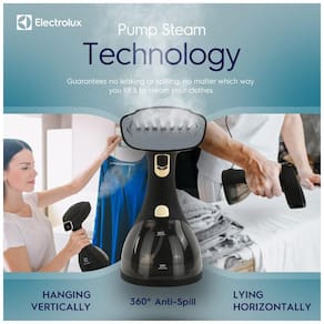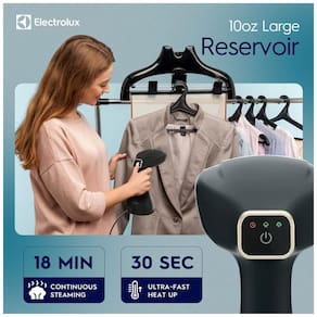 Sistema de vaporização de roupas 2 em 1 Electrolux, portátil, aquece em 30s, reservatório de 300ml, potência de 1500W, ideal para diversos tecidos.Lâmpada piloto