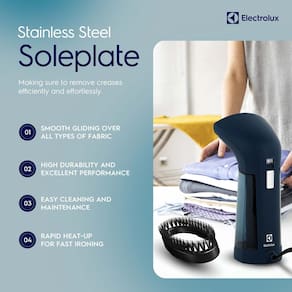 Electrolux sistema de vaporização compacto de viagem, mini sistema de vaporização e ferro para roupas, tamanho de viagem, portátil para roupas e sistema de vaporização de roupas, vapor seco, removedor de rugas de tecido portátil 2 em