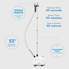 - TEMPO DE AQUECIMENTO RÁPIDO — O tanque de água removível com capacidade de 1,134 g aquece em 45 segundos e oferece até 45 minutos de vapor contínuo.