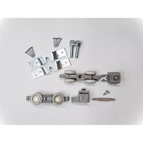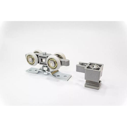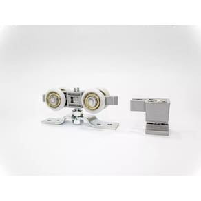 Kit para portas de passagem de madeira com rodízios duplos 4r roldanas com rolamento blindados perfilrold, oferece maior capacidade da carga e baixo ruído pelo assentamento das 4 rodas, para portas com alto giro muitas aberturas .